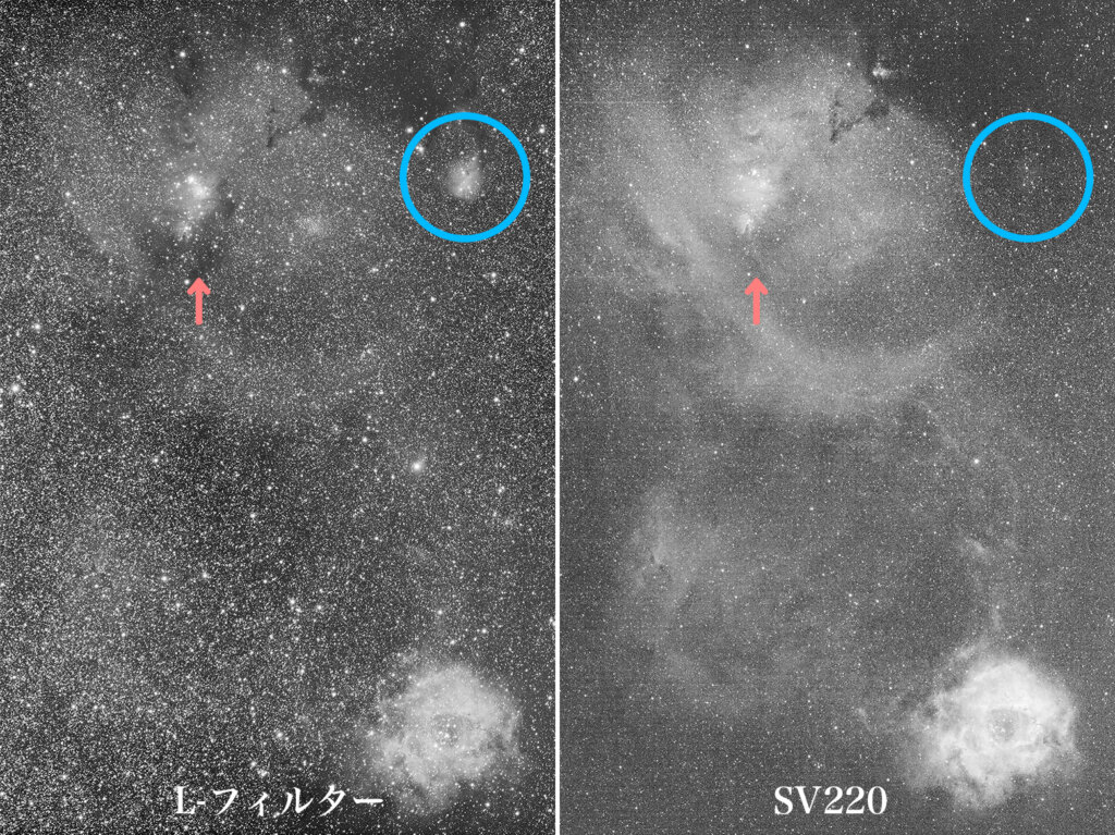 - SV220を使用した方が背景と星雲の分離が良く、細部までよく見えている。