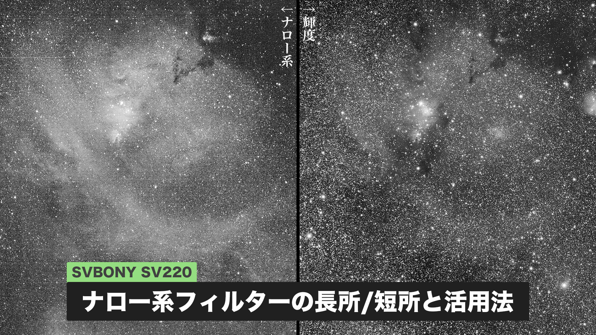 光害地でも星雲の撮影をするために活用される、ナロー系フィルター。実際に撮影地で取得したL(輝度)のデータと、SV220で撮ったものを比較してみました。やはり3nmタイプ、効果は絶大な一方で、改めて暗い空での撮影も必要だと実感させられました。