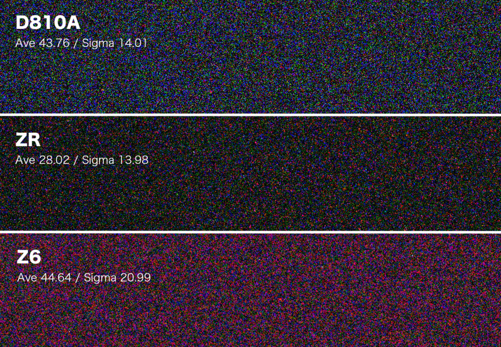 固定ノイズ;ZR < D810A 〜 Z6 (左ほど少ない)