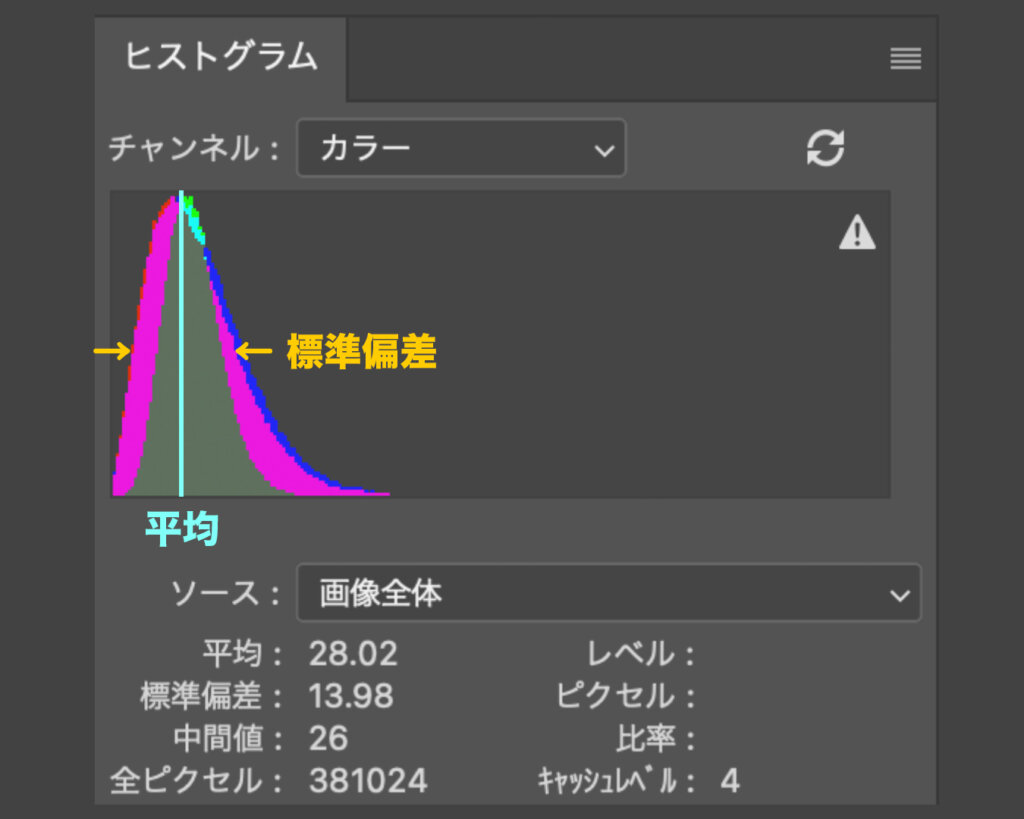 平均;画像平均レベル。輝点ノイズなど「固定」ノイズが多いと値が大きくなる。
